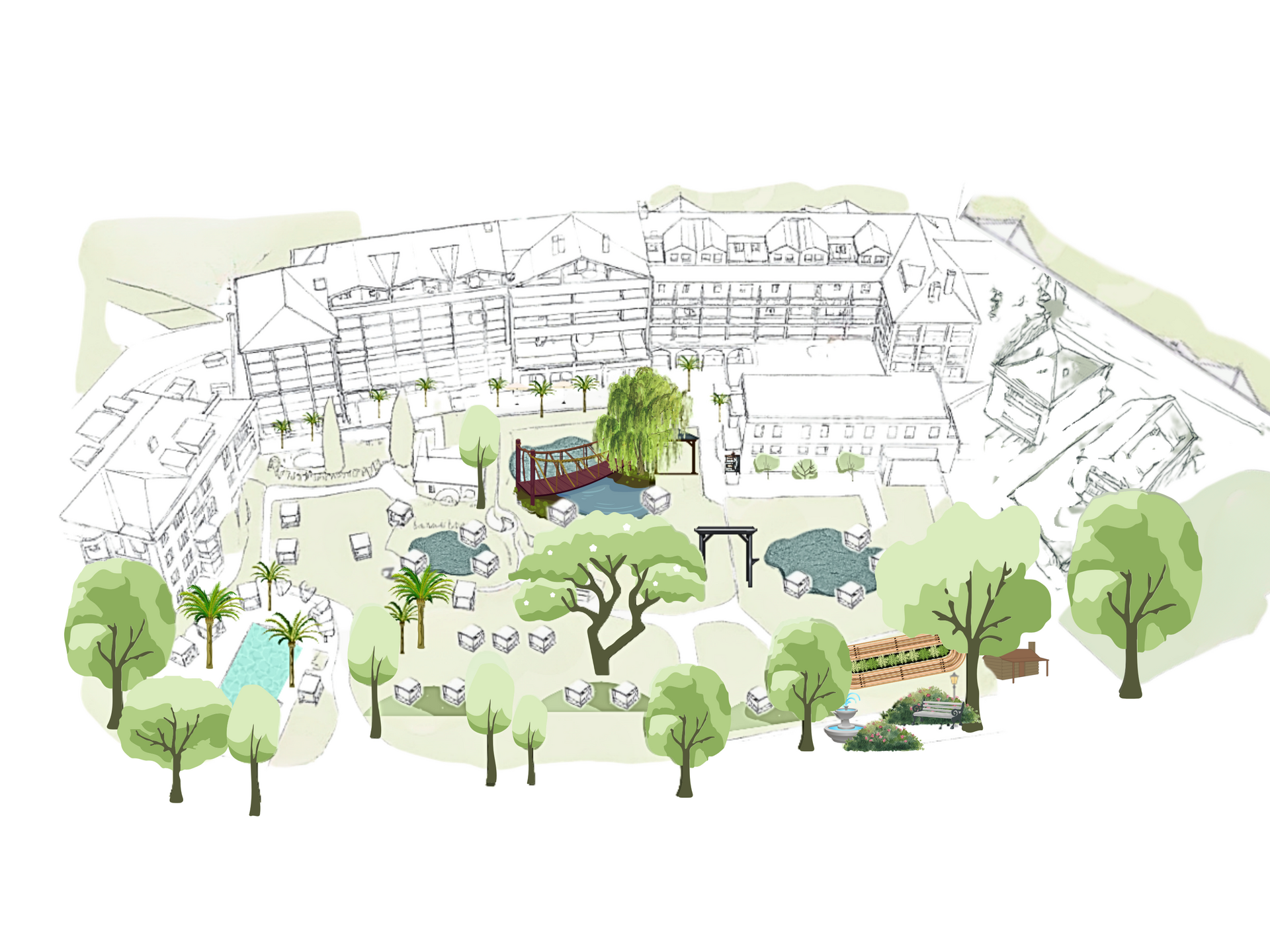 Der Hotelpark ist unser Herzstück. Er vereint mediterranes Flair mit alpiner Leichtigkeit. Im mediterranen Bereich genießen Sie die Sonne unter 100 Palmen oder lassen sich im ganzjährig beheizten Infinity-Pool treiben. Der alpine Teil lädt zum Verweilen am Bergsee ein, neben urigen Südtiroler Almhütten oder bei einem Spaziergang durch den Ultner Kräutergarten und die Meraner Promenade.