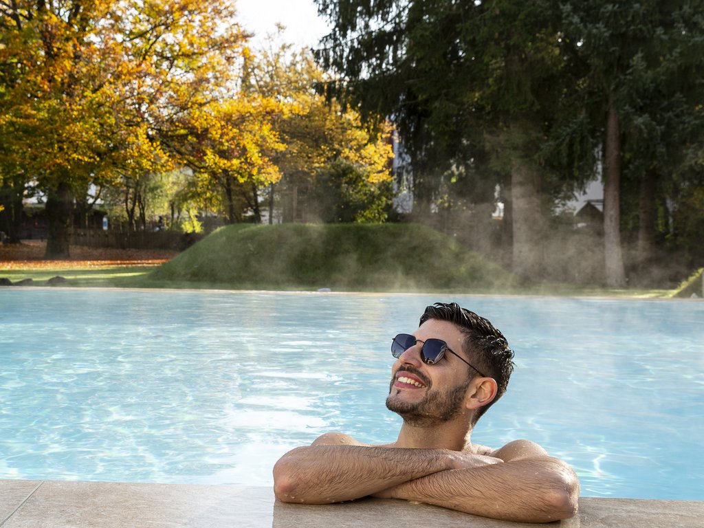 Der Hotelpark ist unser Herzstück. Er vereint mediterranes Flair mit alpiner Leichtigkeit. Im mediterranen Bereich genießen Sie die Sonne unter 100 Palmen oder lassen sich im ganzjährig beheizten Infinity-Pool treiben. Der alpine Teil lädt zum Verweilen am Bergsee ein, neben urigen Südtiroler Almhütten oder bei einem Spaziergang durch den Ultner Kräutergarten und die Meraner Promenade.
