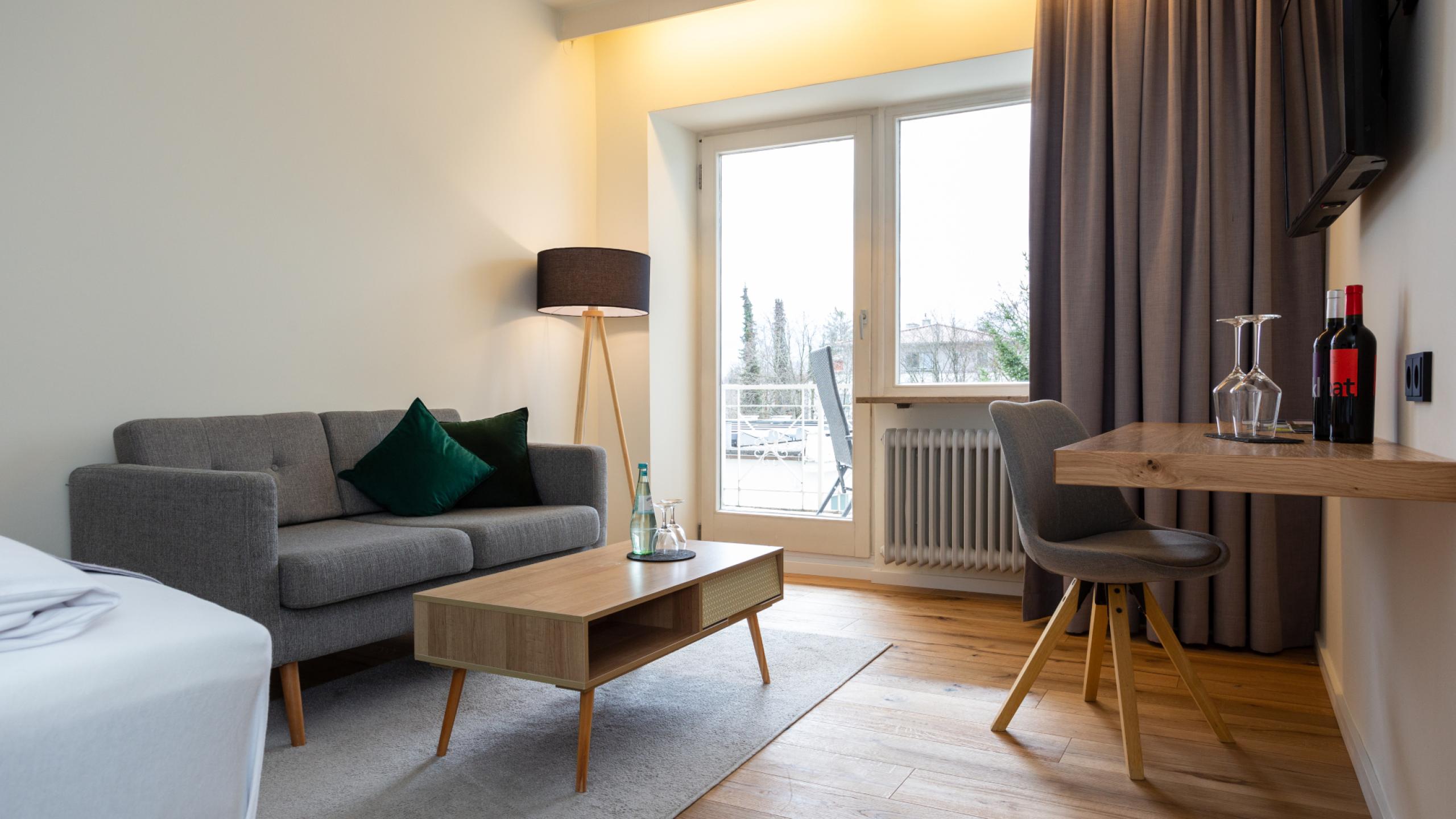 - Gemütliche Sitzecke und eine komfortable Couch laden zum Entspannen ein.